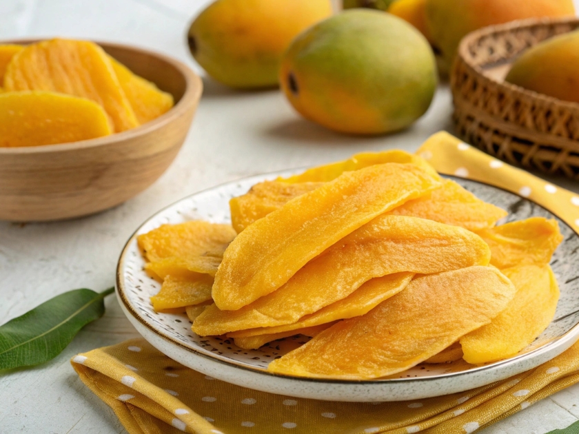 Xoài sấy dẻo được sản xuất từ nguồn xoài tươi chọn lọc tại các vùng nguyên liệu đạt tiêu chuẩn, thu hoạch đúng độ chín nhằm đảm bảo hương vị thơm ngon tự nhiên. Sản phẩm được chế biến theo quy trình kiểm soát nghiêm ngặt, giữ được màu sắc vàng tươi, vị ngọt dịu đặc trưng và kết cấu mềm dẻo hấp dẫn.
